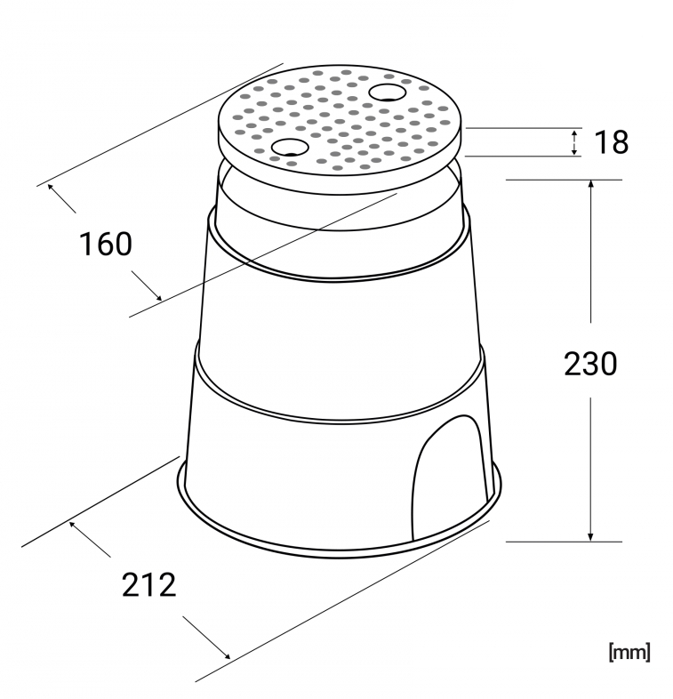 Maža vožtuvų dėžė, skersmuo 21 cm. Dėžutė suteikia prieigą pvz. prie elektrinių vožtuvų, rankinių vožtuvų, vandens skaitiklių ir kt.