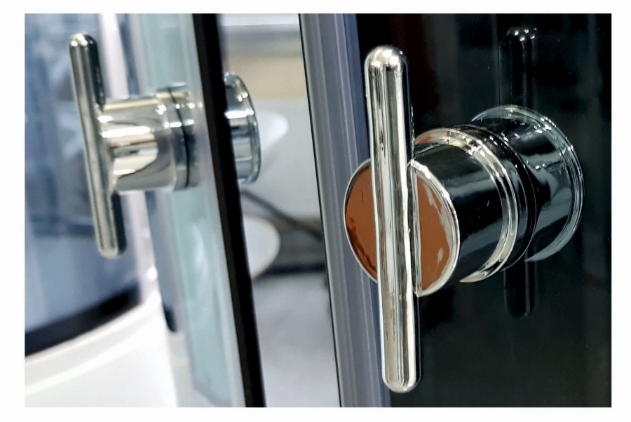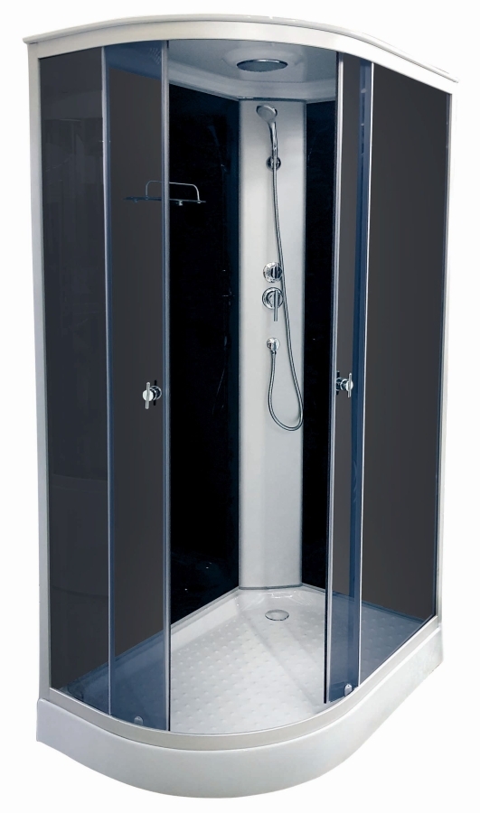 • Dušo kabinos priekiniai stiklai matiniai, o galiniai juodi.
