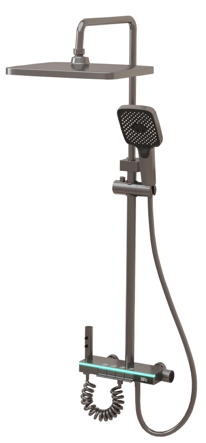Dušo maišytuvas su skaitmeniniu temperatūros ekranu ir reguliuojamomis funkcijomis,