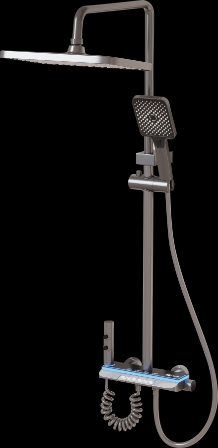 Dušo maišytuvas su skaitmeniniu temperatūros ekranu ir reguliuojamomis funkcijomis,