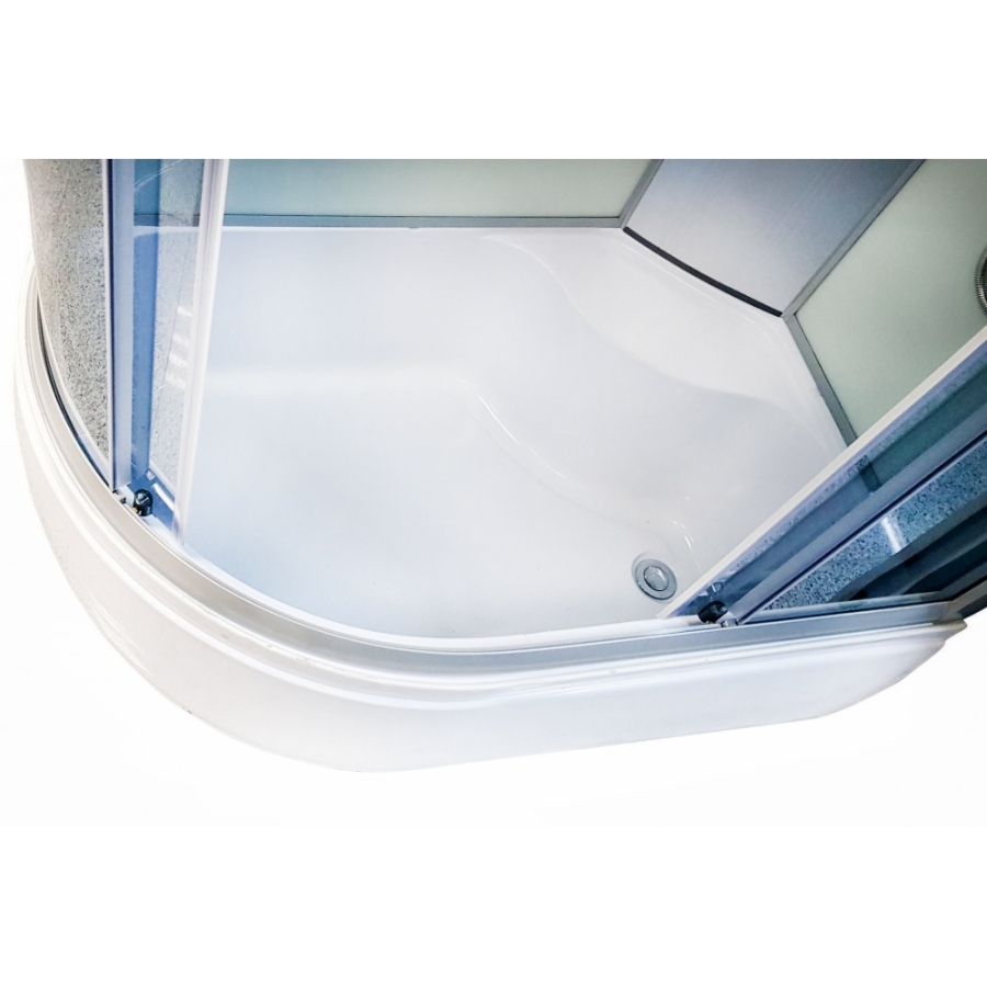 Dušo kabina statoma į dešinįjį patalpos kampą.