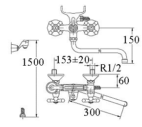 Sukiojamas maišytuvo čiaupas, 300 mm ilgio.