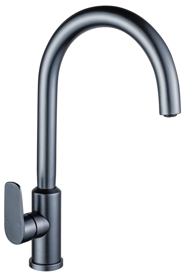 Vienos rankenėlės virtuvinis maišytuvas lenktu snapu, sukiojamu 360 laipsniu kampu.