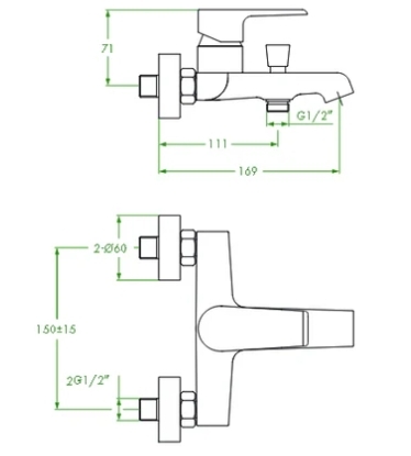 LAVEO LARGO 202K W-CH - svirtinis vandens maišytuvas voniai-dušui, be dušo komplekto.