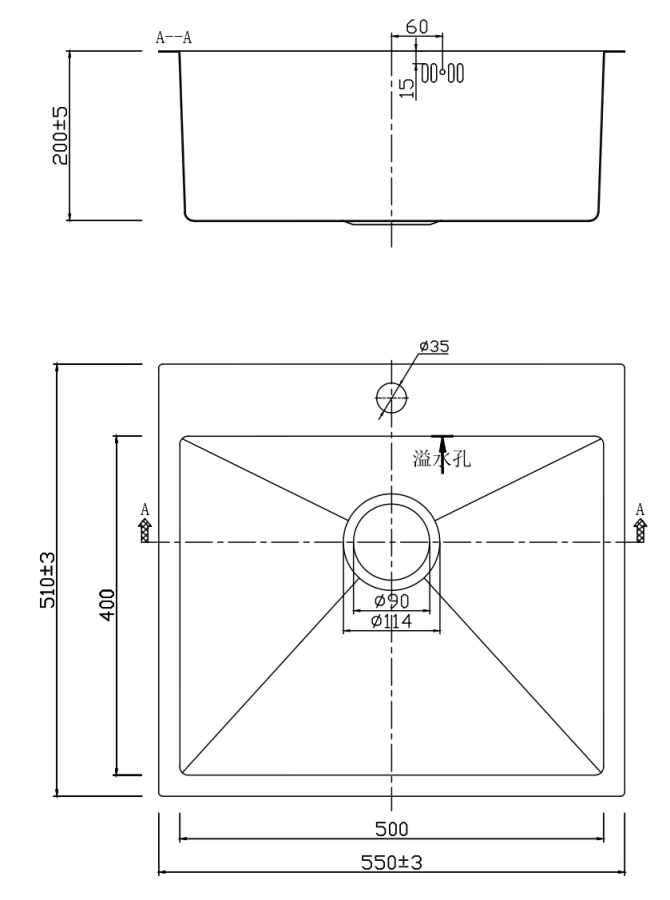 Gili nerūdijančio plieno plautuvė (gylis 200 mm) su skyle maišytuvui.