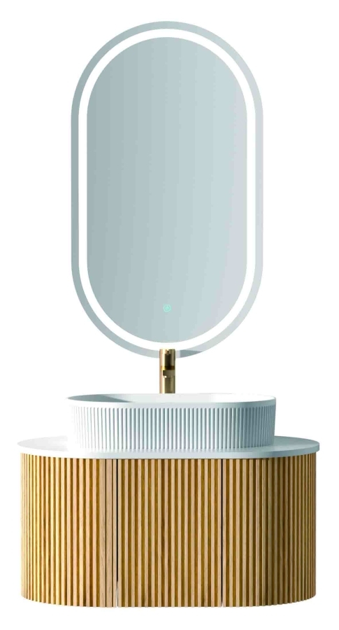 Pakabinama spintelė su keramikiniu praustuvu (LED veidrodžio komplekte nėra, įsigyjama atskirai).