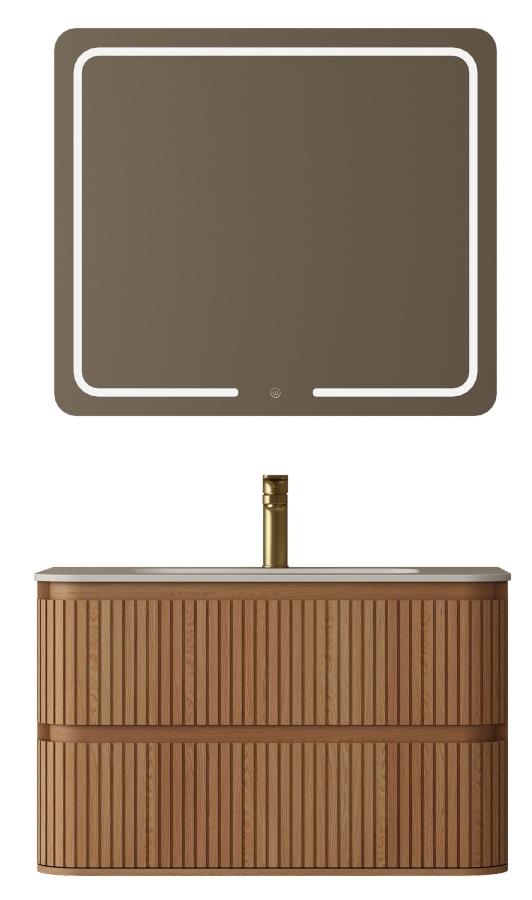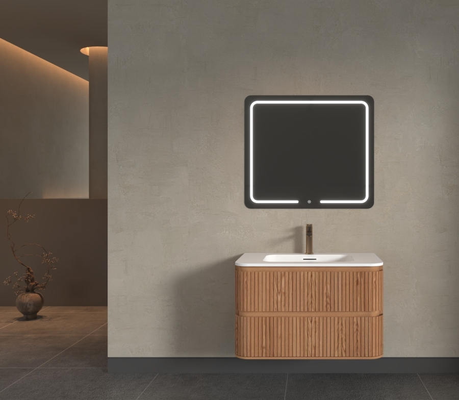 Pakabinama spintelė su akmens praustuvu (LED veidrodžio komplekte nėra, įsigyjama atskirai).